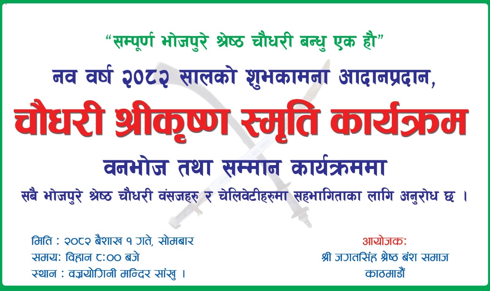 चौधरी श्रीकृष्ण स्मृती कार्यक्रम २०८२ बैशाख १ गते